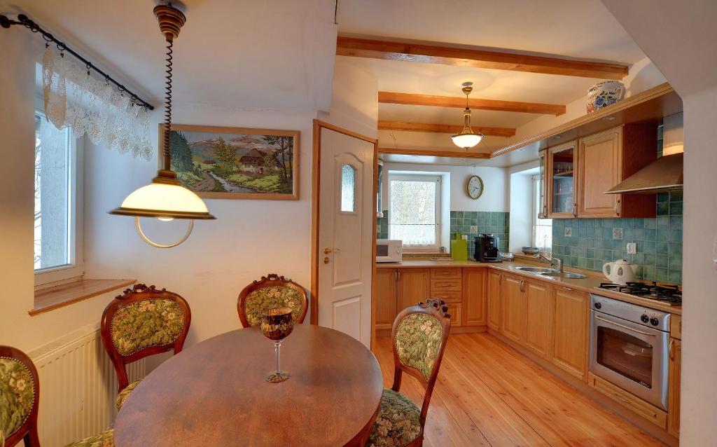 – parter: kuchnia połączona z jadalnią wraz z kominkiem, łazienka, pomieszczenie gospodarcze, kotłownia, salka,